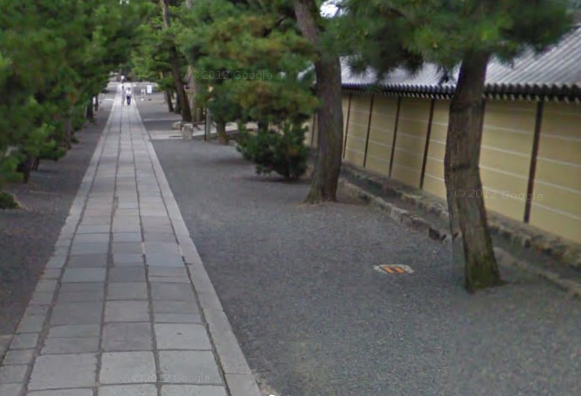 妙心寺内の「霊雲院」と「大庫裏」の建物間の小道がその撮影シーンで使われたようです。