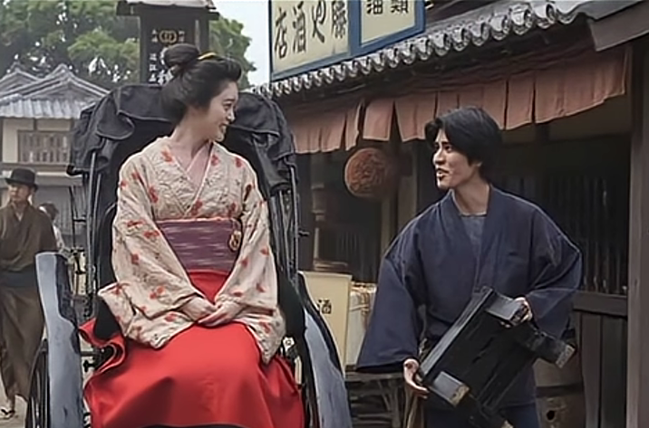 その男性にしつこく言い寄られ困っているところへ、人力車を引いていた銀二郎が現れ、トキを乗せてその場を立ち去る——という印象的な場面です。