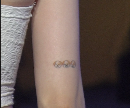 当初、”黒いタトゥー”と話題になってましたが、拡大するとカラーで子犬が3匹描かれたタトゥーだと言うことがコアなファンの間で特定されています。