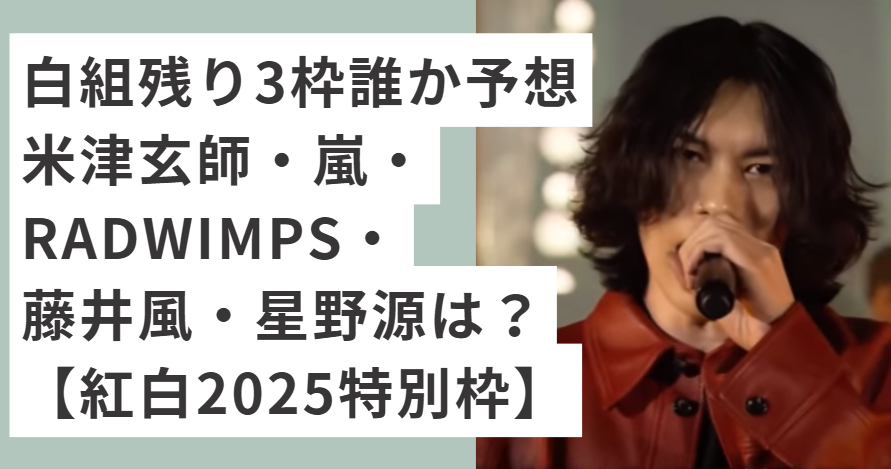 【紅白2025】白組残り3枠誰?嵐・米津玄師・RADWIMPS・藤井風・星野源は?特別枠も予想!の記事はこちらです。